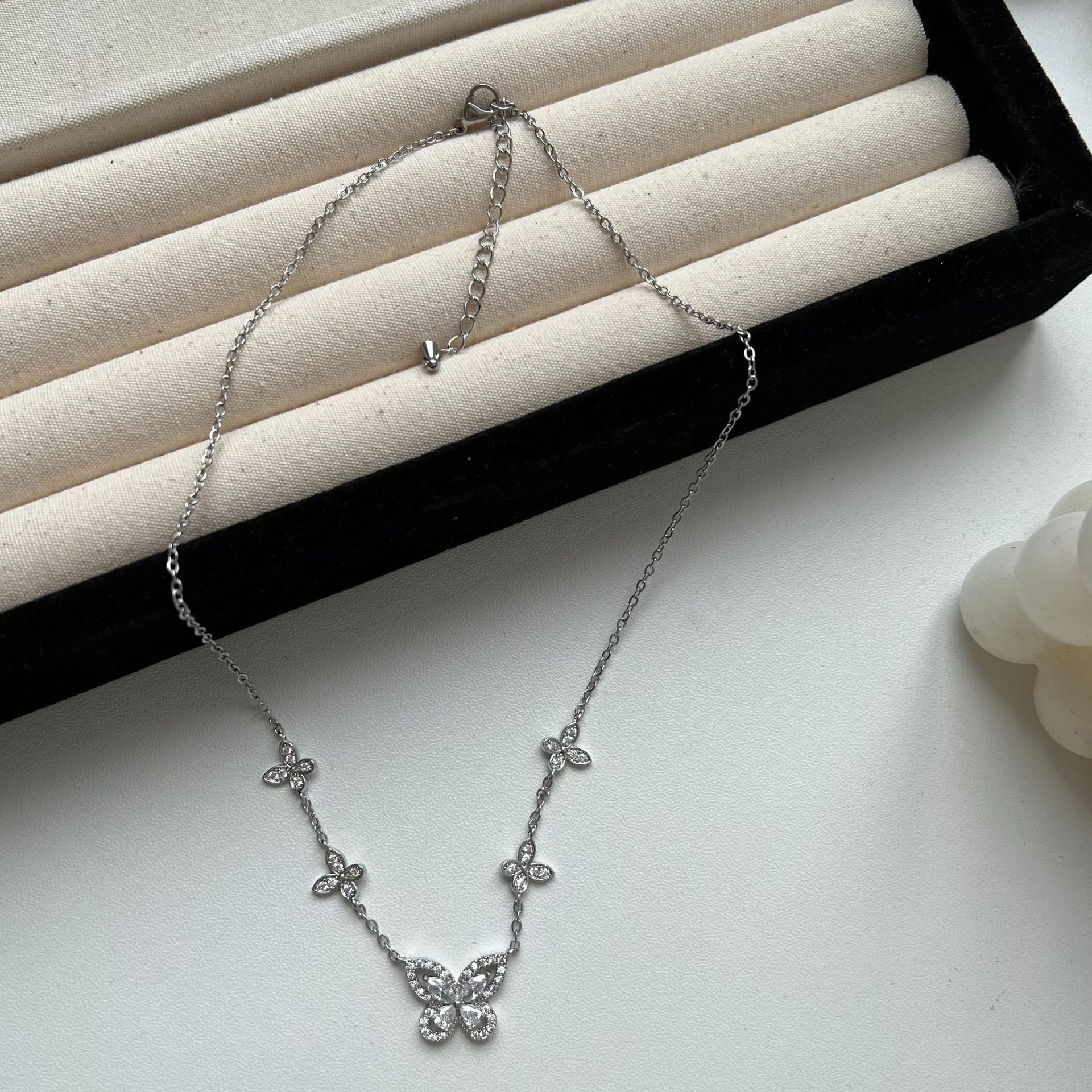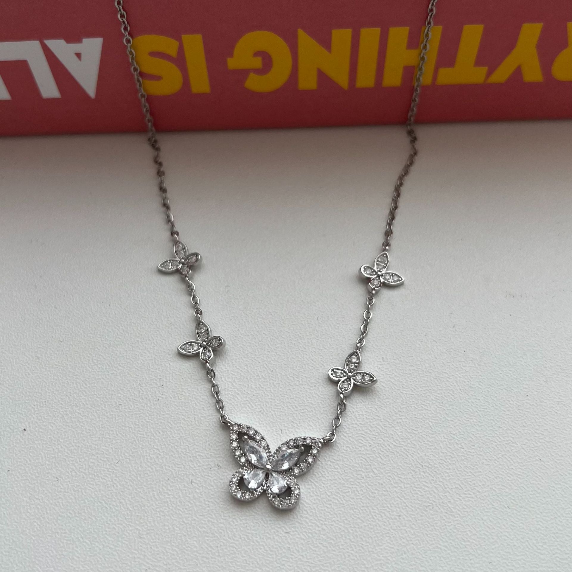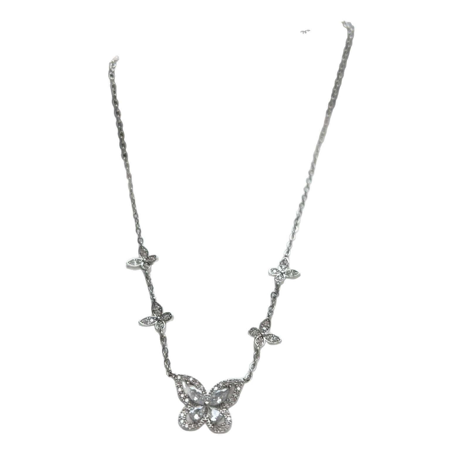 Five-flower flash diamond butterfly necklace