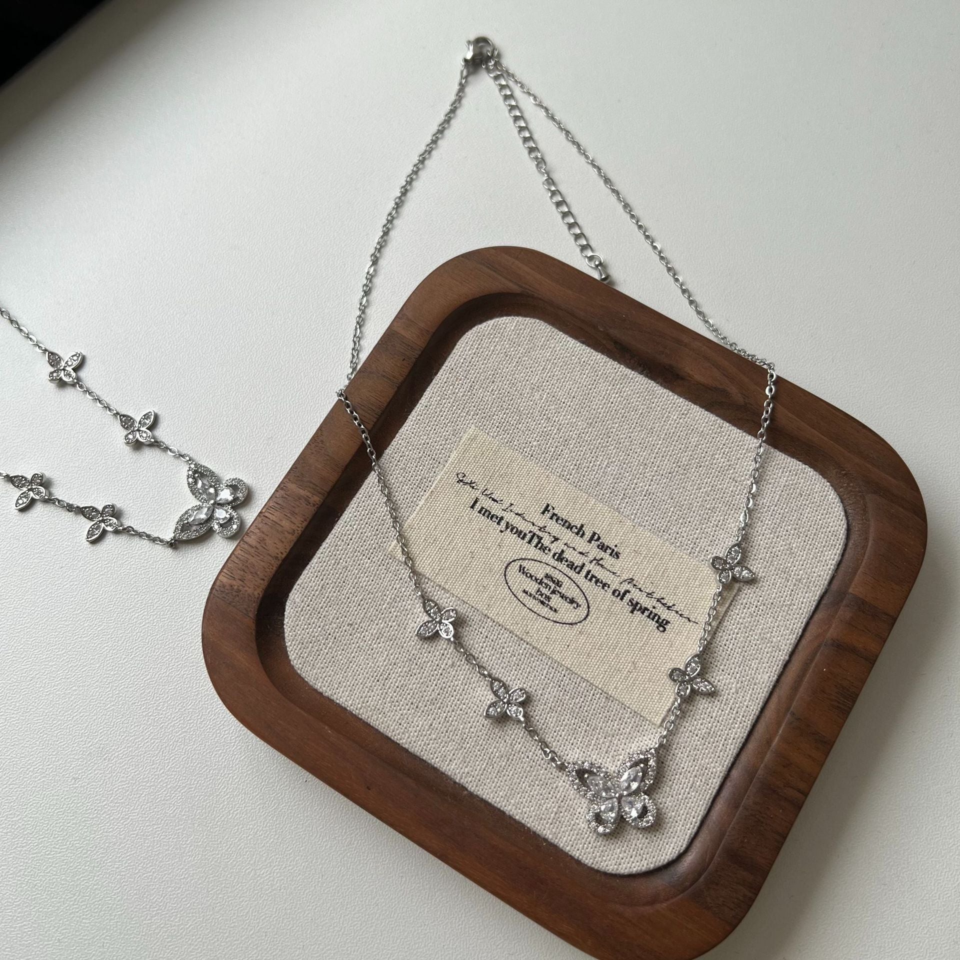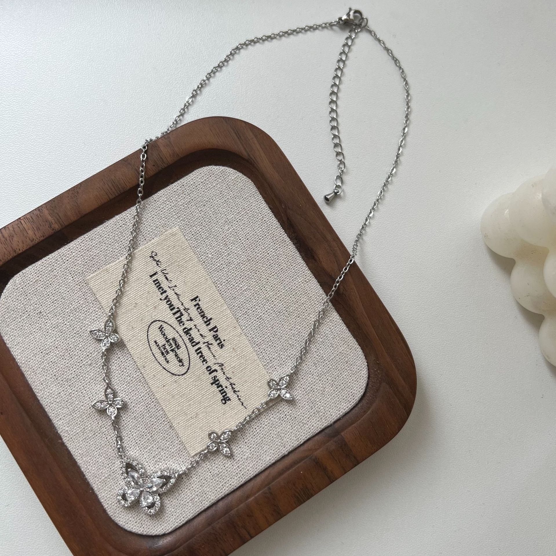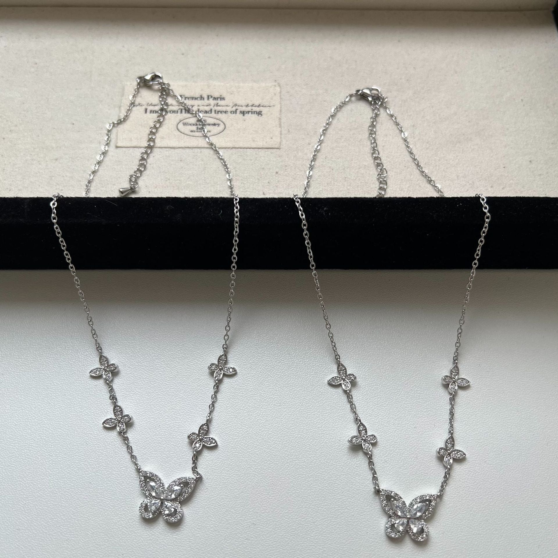 Five-flower flash diamond butterfly necklace